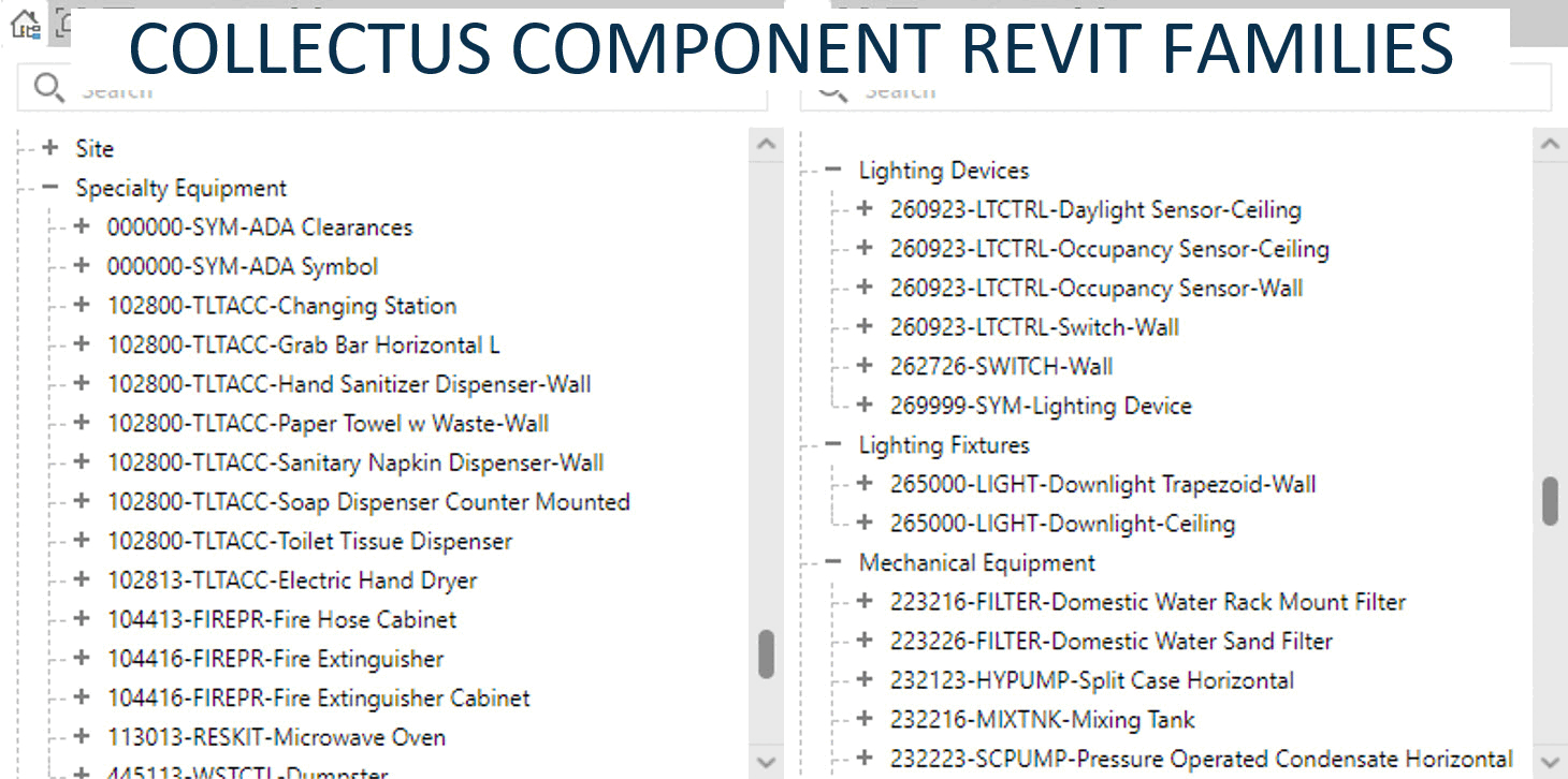 ✅ 36,000+ Standardized Revit Families: All named using CSI’s MasterFormat 6-digit classification, ensuring every component is consistently categorized for asset management and operations.